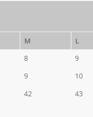 | EU | 37 | 38 | 39.5 | 41 | 42 | 43 | 44.5 | 46 | 47 | 48 |