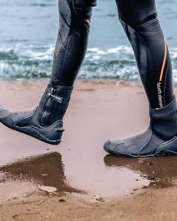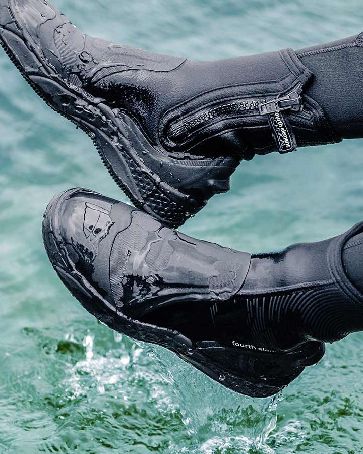 "The recycled dive fin. It is the unique combination of materials which makes this fin special. The plastic is made from 100% reclaimed post-consumer waste polypropylene and the rubber is made with recycled TPR. By using materials in this way, we are preventing plastic being sent to landfill or ending up as waste in the ocean as part of fourth element’s mission to become OceanPositive."